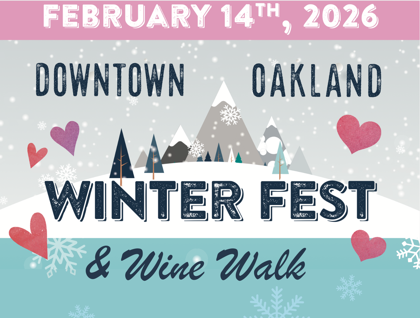 Winter Fest '26 Saturday, February 14, 2026 11:00 AM 4:00 PM 11:00 16:00 Oakland A&E District 108 South Second Street Oakland, MD 21550 USA (map) Google Calendar ICS Click HERE for Wine Walk Tickets! SPONSORS: Click here