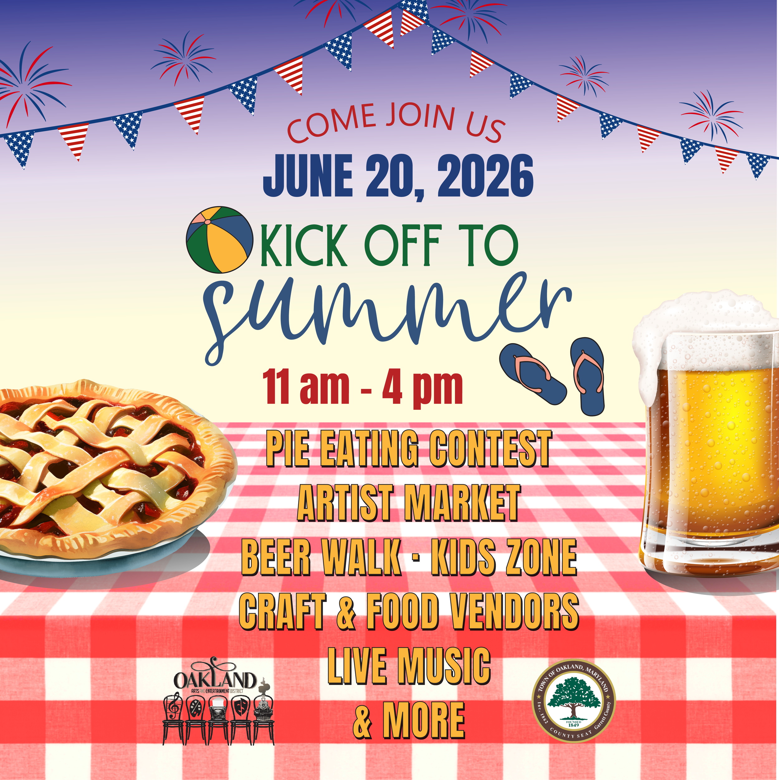We are joining the rest of the nation, State of Maryland, and all of Garrett County in celebrating the 250th anniversary of our country! Get ready for a pie-eating contest and live music; craft and food vendors, and a specially curated Artist Market!